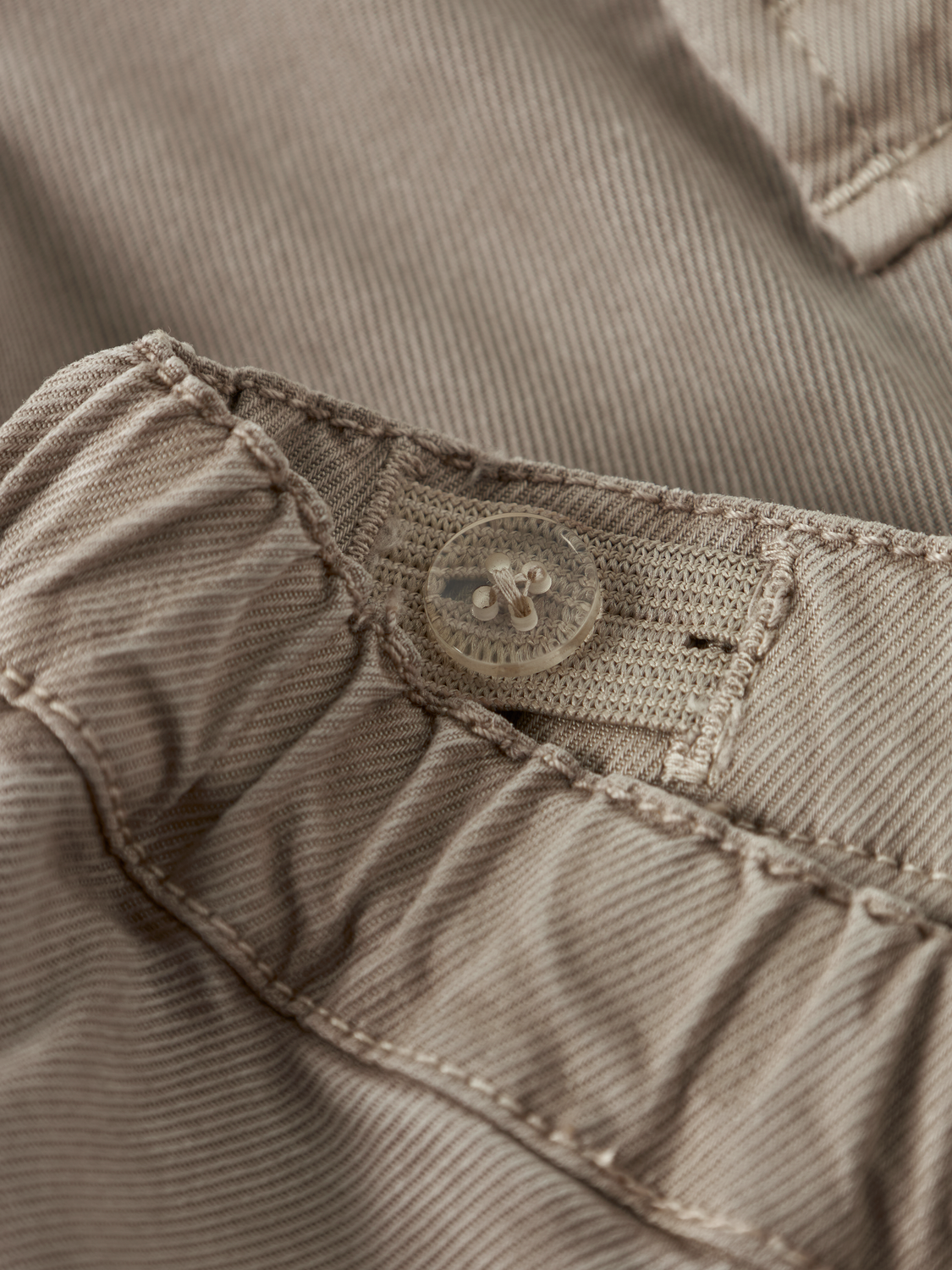 Disse baggy cargo bukser er designet med fokus på komfort og funktionalitet til de mindste. De er lavet i holdbart twill-stof, som kendetegnes ved sit diagonale vævmønster, hvilket giver et klassisk udseende. Bukserne har baglommer og cargolommer, samt en justerbar talje, så de kan tilpasses perfekt. Med en løs pasform både på hofte og ben, sikrer de god bevægelsesfrihed for dit barn.