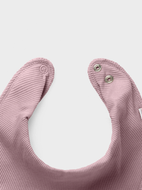 Name it ribstrikkede hagesmæk i ét størrelsesformat kombinerer funktionalitet med et tidløst design. Med sit lodrette, stribede mønster og bløde materiale føles den behagelig at have på. Materialerne indeholder 50% økologisk bomuld, som er dyrket uden skadelige kemikalier, hvilket bidrager til at beskytte naturen og biodiversiteten. Hagesmækken lukkes nemt med trykknapper og har et dekorativt emblem.