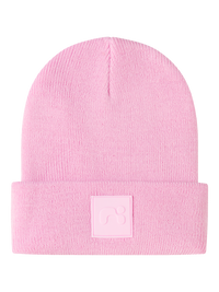 Name it strikket hue, der holder dit barn varmt og behageligt med blødt materiale. Huen har en fin badge-detalje, som giver et stilfuldt touch. Den er designet til børn og passer godt til efterårsvejret i en lys, rosenfarvet tone.