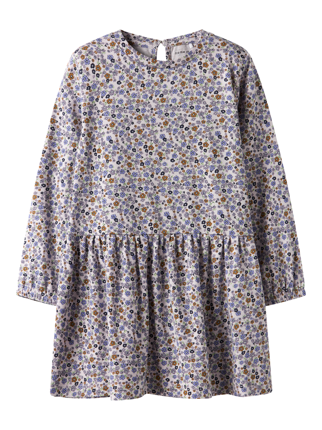 Kjolen har en rund hals og lange ærmer med knaplukning, hvilket giver et klassisk og komfortabelt look. Designet med en regular pasform og lavet i jersey, et let og elastisk stof, som føles blødt mod huden og giver god bevægelsesfrihed. Kjolen har en lys lilla nuance kaldet Lilac Marble, som giver et elegant og moderne præg.