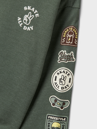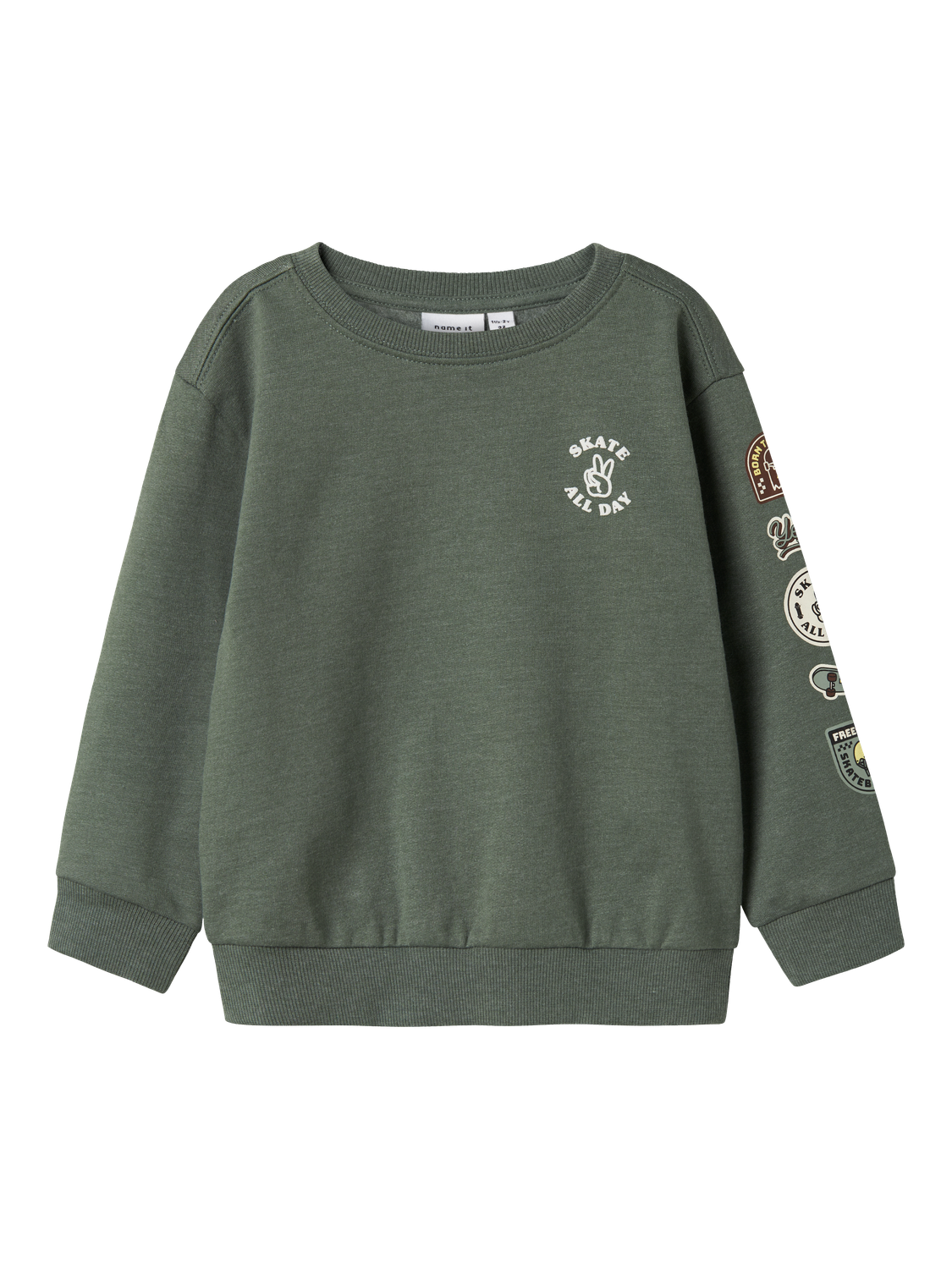 Name it sweatshirt er fremstillet i en blød og børstet sweat-stof, som giver en behagelig følelse mod huden. Modellen har en rund hals og lange ærmer med ribbet kant, der sikrer en god pasform. Sweatshirten har en regulær pasform, der gør den både komfortabel og let at style.