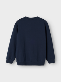 Name it sweat er lavet i en børstet sweatstof, der har en blød inderside for en behagelig følelse. Den har rund hals og lange ærmer med ribbede manchetter, der sikrer en god pasform uden at stramme. Farven er en dyb navy blå, som passer godt til vintergarderoben. Printet er lavet med blød gummi, der giver en behagelig overflade og en cool detalje. Sweatshirten har en regular fit, som gør den velegnet til børn.