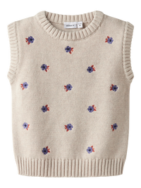 Name it strikkede slipover har en rund hals og ribbede kanter, der giver et behageligt og klassisk udtryk. Slipoveren er lavet i blød og økologisk bomuld, hvilket sikrer komfort og bæredygtighed. Det enkle, men tidløse design med broderi gør den velegnet til både hverdag og mere afslappede anledninger.