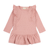 Petit Piao kjole med lange ærmer i blødt økologisk bomuld. Den har trykknap ved skulderen og detaljer med flæser.