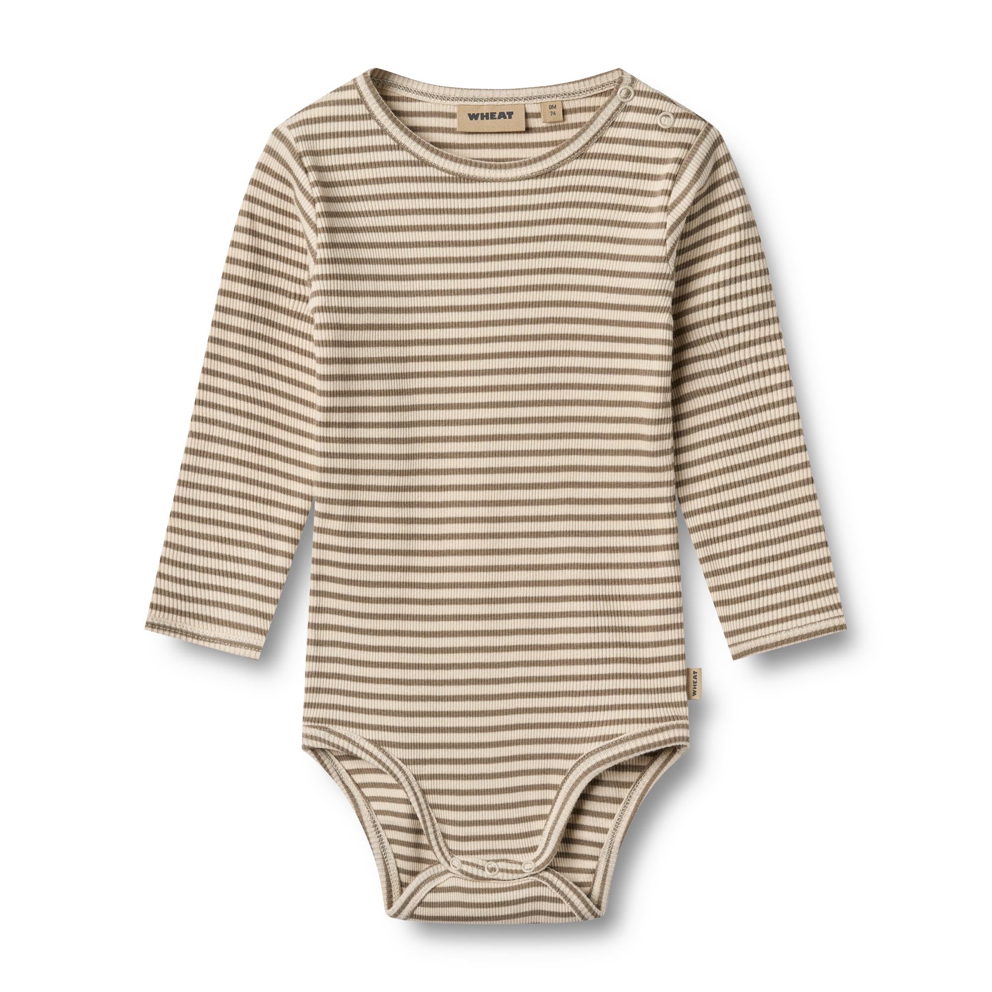 Wheat body i blød og lækker økologisk bomuldsrib. Denne body har trykknapper på den ene skulder samt i bunden for bedre komfort, når du skal klæde dit barn på.