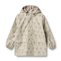 Wheat regnjakke Ollo er lavet i et superblødt og let materiale, der gør det behageligt for dit barn at have på og bevæge sig rundt i. Det er vandtæt og smudsafvisende, og er derfor nemt at rengøre med en våd klud efter en mudret eftermiddag på legepladsen.